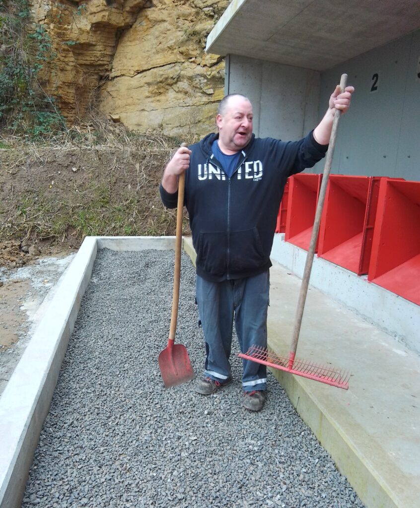 Während andere am Valentinstag gemütlich bei Kerzenschein saßen, wurde bei uns im Verein wieder einmal geschuftet, was das Zeug hält. Denn wahre Liebe zeigt sich manchmal nicht mit Rosen sondern mit Schaufel, Gummistiefeln und jeder Menge Ausdauer. Zwei unserer unermüdlichen Vereinshelden, Michael Butz und Wolfgang Deffland, haben sich auch von Regen, Matsch und immer neuen Herausforderungen nicht aufhalten lassen. Ganz im Gegenteil: Wo andere den Kopf schütteln, setzen sie den Spaten an. Für die Beleuchtung unseres 50-Meter-Standes wurde kurzerhand ein Schacht ausgehoben, pure Muskelkraft, Wasser von oben und Matsch von unten. Und als wäre das nicht genug: Immer neue Änderungen, immer neue Hürden, kleine Tiefschläge zwischendurch doch was bleibt, ist diese bewundernswerte Energie. Diese Mischung aus Tatkraft, Vereinsliebe und dem festen Willen: „Wir ziehen das jetzt durch!“ Ein treffender Spruch von Michael Butz. Jede Arbeitsstunde in Eigenleistung ist dabei mehr als nur Muskelkraft sie ist bares Geld wert. Und sie schont unser ohnehin beanspruchtes Vereinskonto. Was hier geleistet wird, kann man nicht hoch genug schätzen. Doch nicht nur an der Baustelle wird Großartiges geleistet.